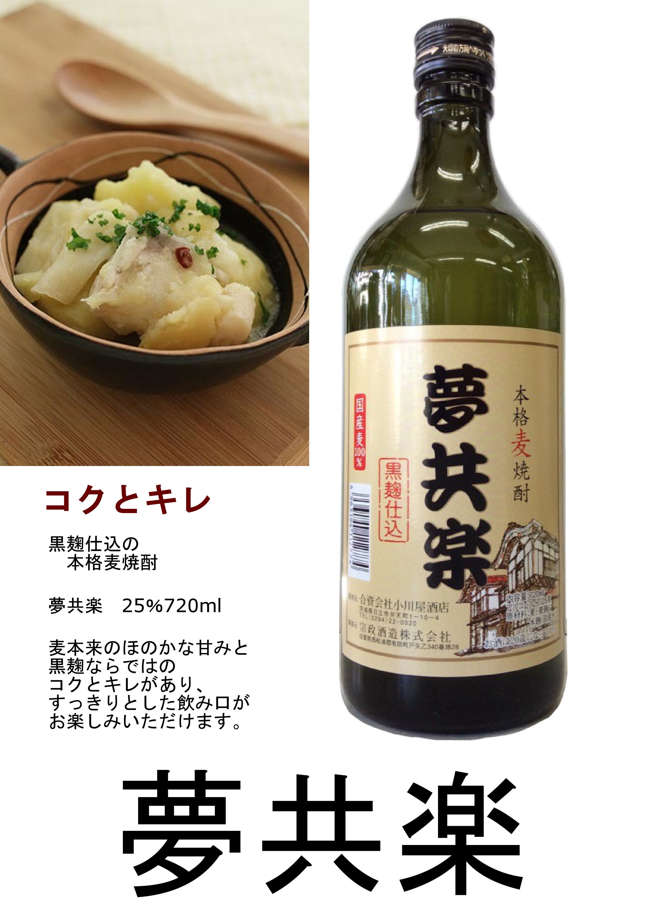 ◇麦本来のほのかな甘味と、黒麹(くろこうじ)ならではのコクとキレがあり、すっきりとした飲み口が特徴です。