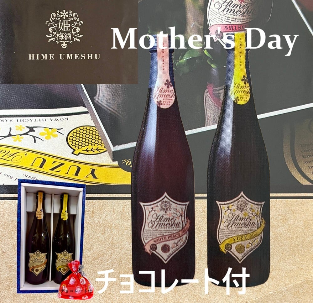 【母の日に!】お母さんも大好きな梅酒のセット ☆天然のももフレーバーの梅酒と柚子のフレーバーの梅酒が各1本ずつ、合計720ml×2本セットです。【チョコレート付き】が嬉しい!