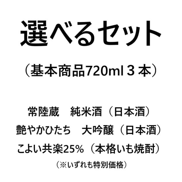 ・選べるセット(基本商品720ml3本)+お好みのお酒(いずれも720mlを最大3本まで選べます!)➡(720mlのお酒を)最大合計6本(お好きな組み合わせ)でお届けします!