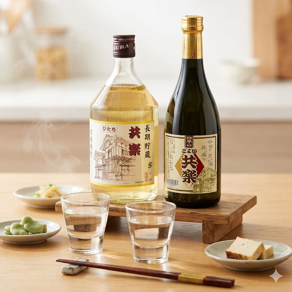 こよい共楽は、まろやかな味わいとスムーズな飲み口、ほんのりとした甘みが魅力です。一方、ひたち共楽は、長期貯蔵による深いコクと味わいが特徴で、口の中で広がる豊かな香りも楽しめます。食事とともに楽しむ際には、特に和食との相性が良く、素材の味を引き立てること間違いなしです。