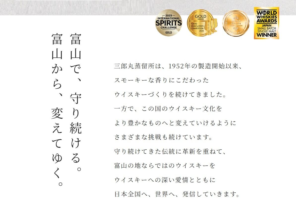 ※三郎丸蒸留所モルトとスコッチグレーンウイスキー等の輸入原酒を用いてブレンドしています。